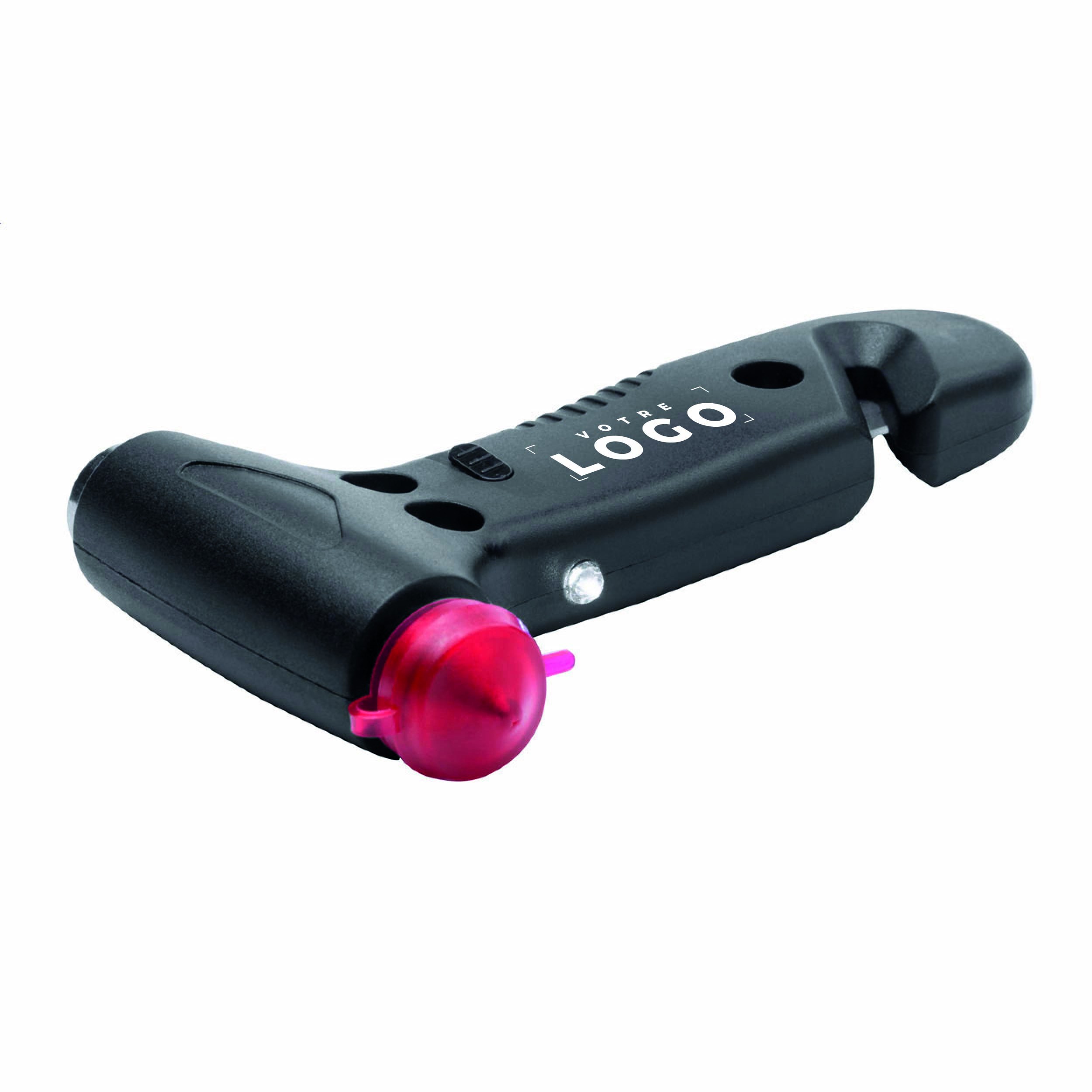 Marteau de secours multifonctionnel avec coupe-ceinture et lampe LED, livré avec piles incluses, conçu pour réagir rapidement en situation d’urgence. Sa surface personnalisable permet d’ajouter votre logo ou message, faisant de ce marteau un goodie utile, valorisant et mémorable pour clients, prospects et collaborateurs. Un outil de sécurité indispensable qui renforce la confiance et l’image professionnelle de votre entreprise.
