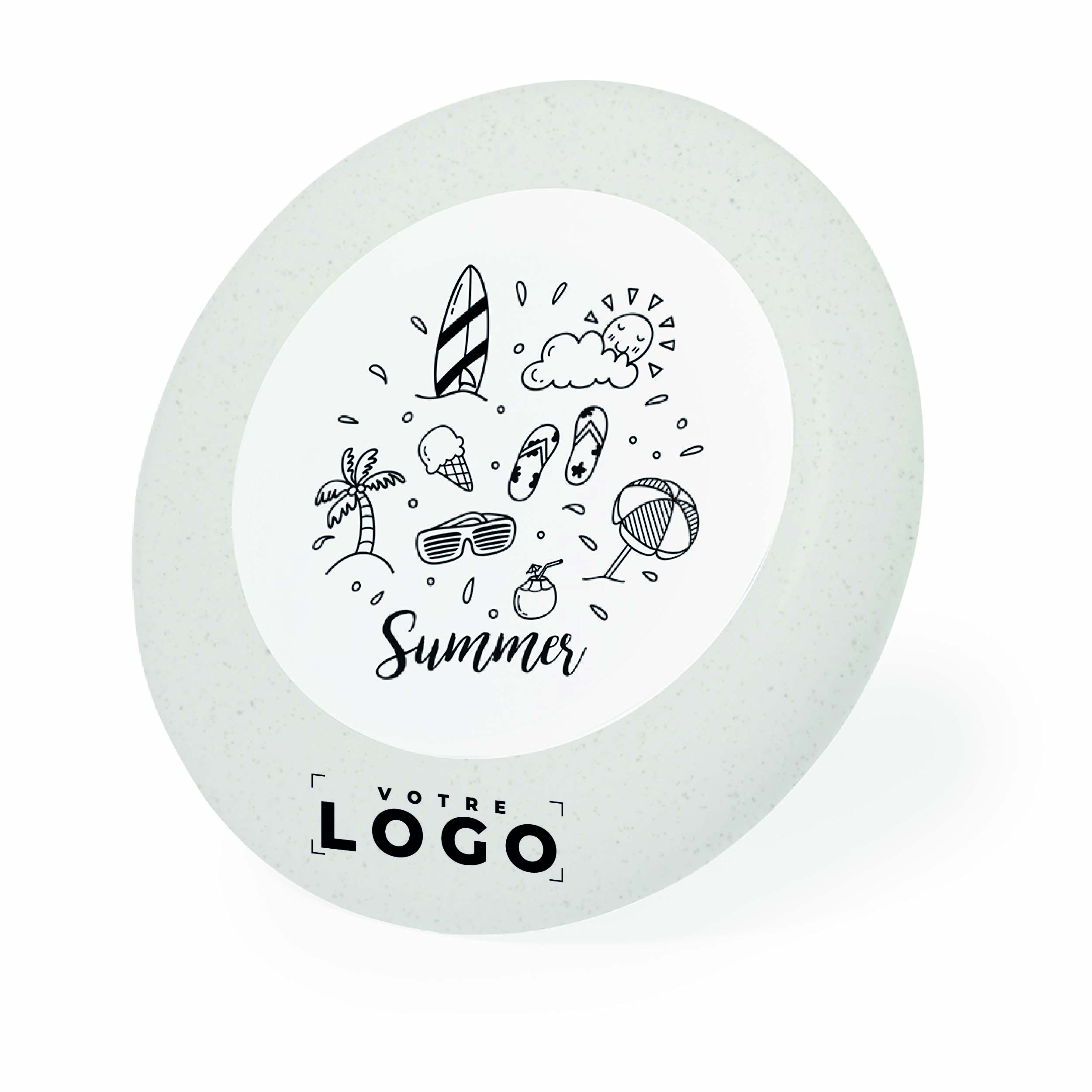 Fabriqué à partir de canne à blé, une matière naturelle et renouvelable, ce frisbee respecte l’environnement tout en étant léger, solide et agréable à manipuler. Sa fabrication innovante allie durabilité et respect de la nature, ce qui valorise fortement votre image auprès de clients, prospects ou collaborateurs sensibles aux valeurs éco-responsables.