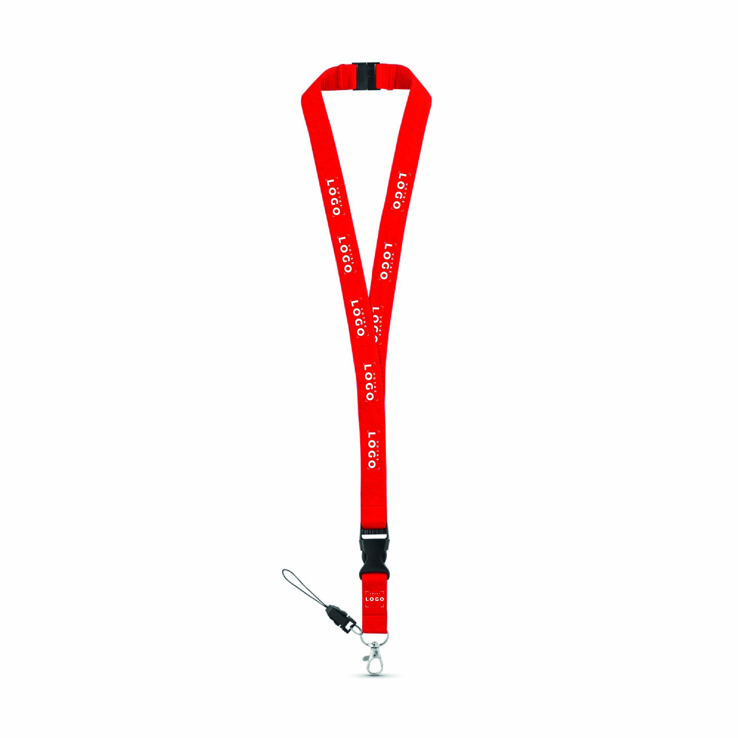 Tour de cou en polyester avec mousqueton en métal et fermeture de sécurité
