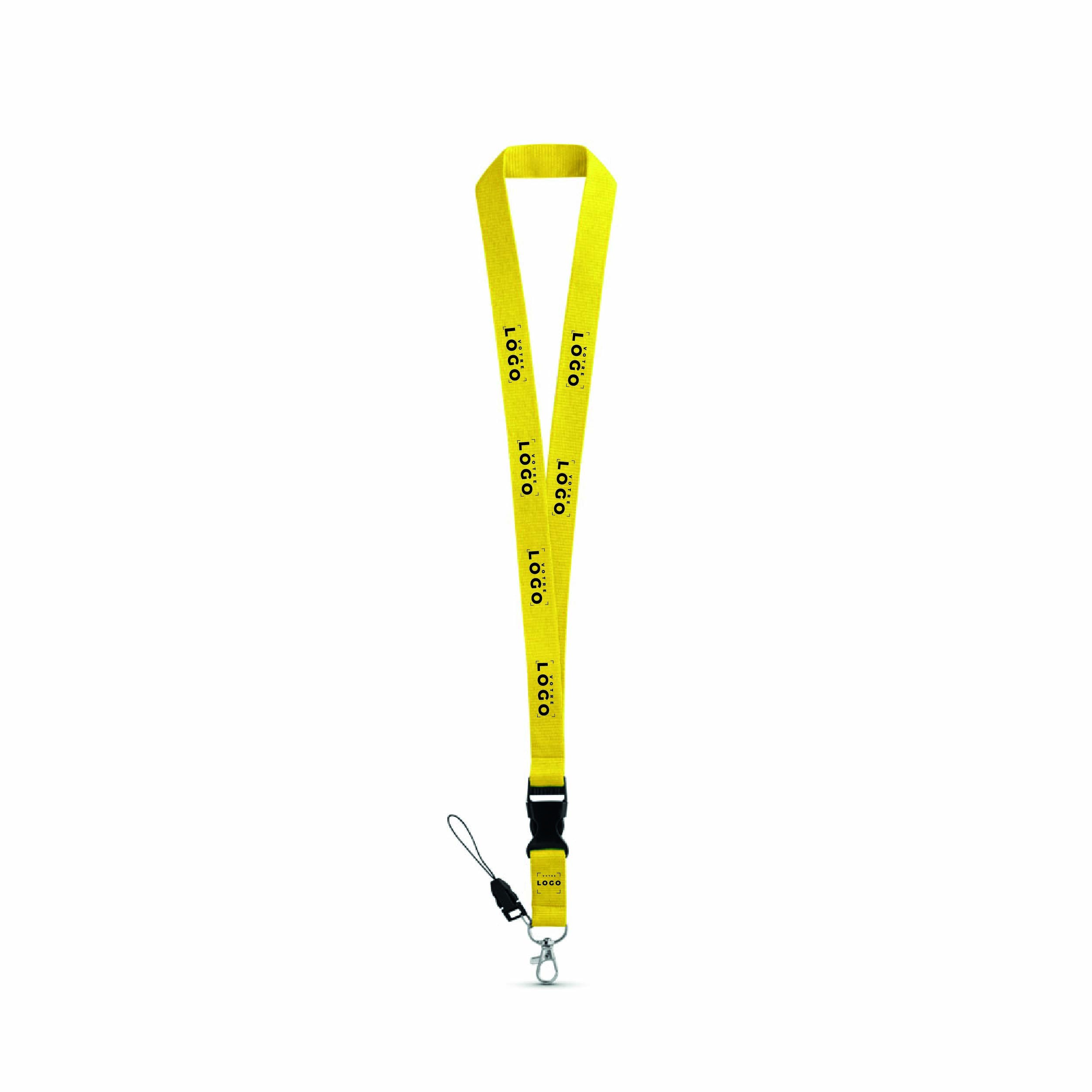 Le tour de cou en polyester avec mousqueton en métal, boucle amovible et dragonne pour téléphone portable est l'accessoire idéal pour garantir à vos clients, prospects ou collaborateurs une expérience optimale lors de vos événements ou festivals. Conçu pour être à la fois fonctionnel et élégant, cet objet personnalisé est un choix parfait pour un usage quotidien ou pour des occasions spéciales.