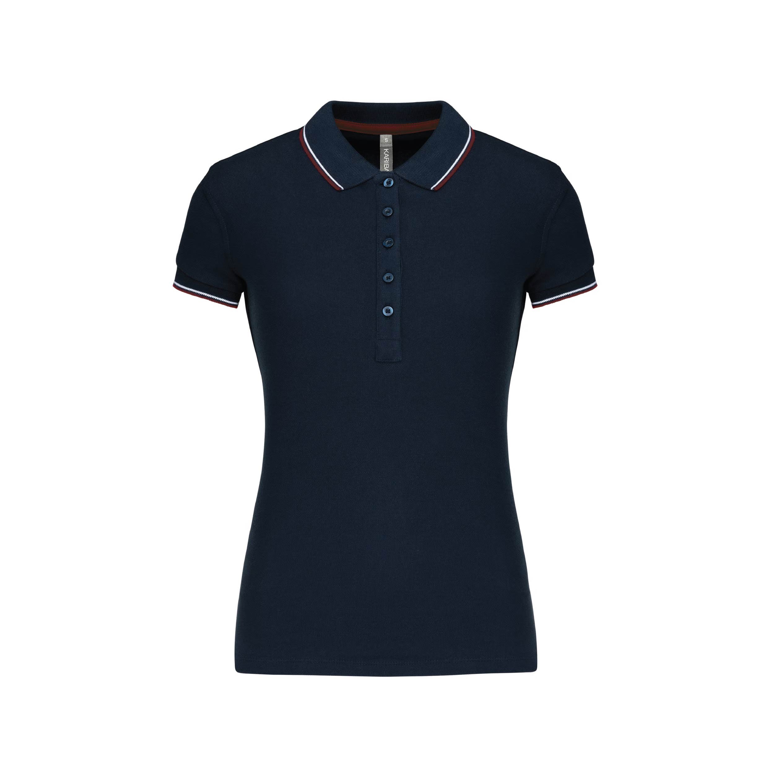 DU XS au XXL. Le polo maille piquée manches courtes pour femme est un vêtement élégant et confortable, idéal pour les événements, campagnes marketing et cadeaux d’entreprise. Confectionné en coton piqué doux, avec rayures tricolores contrastées au col et aux manches, il combine style chic et confort durable. La patte de boutonnage à 5 boutons, bande de propreté à l’encolure et fentes latérales contrastées, ainsi que la double aiguille au bas du vêtement, garantissent un look soigné et fonctionnel. Un support promotionnel haut de gamme qui valorise votre marque auprès de clients, prospects et collaborateurs. Prix unitaire indicatif (sans marquage)