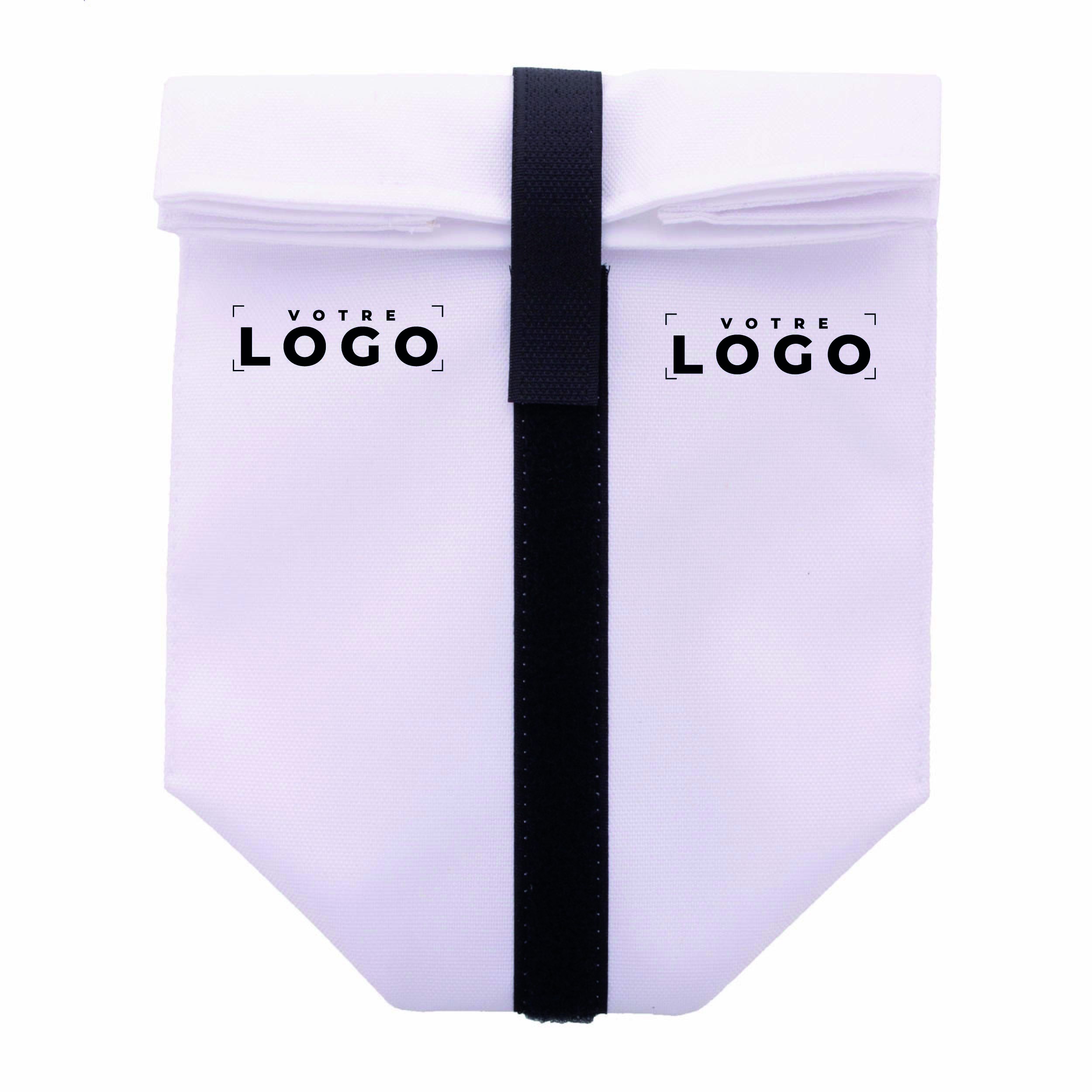 Sac à goûter réutilisable en RPET 600D, avec doublure imperméable et fermeture velcro, personnalisable sur toute la surface par sublimation. Quantité minimale : 25 pièces.