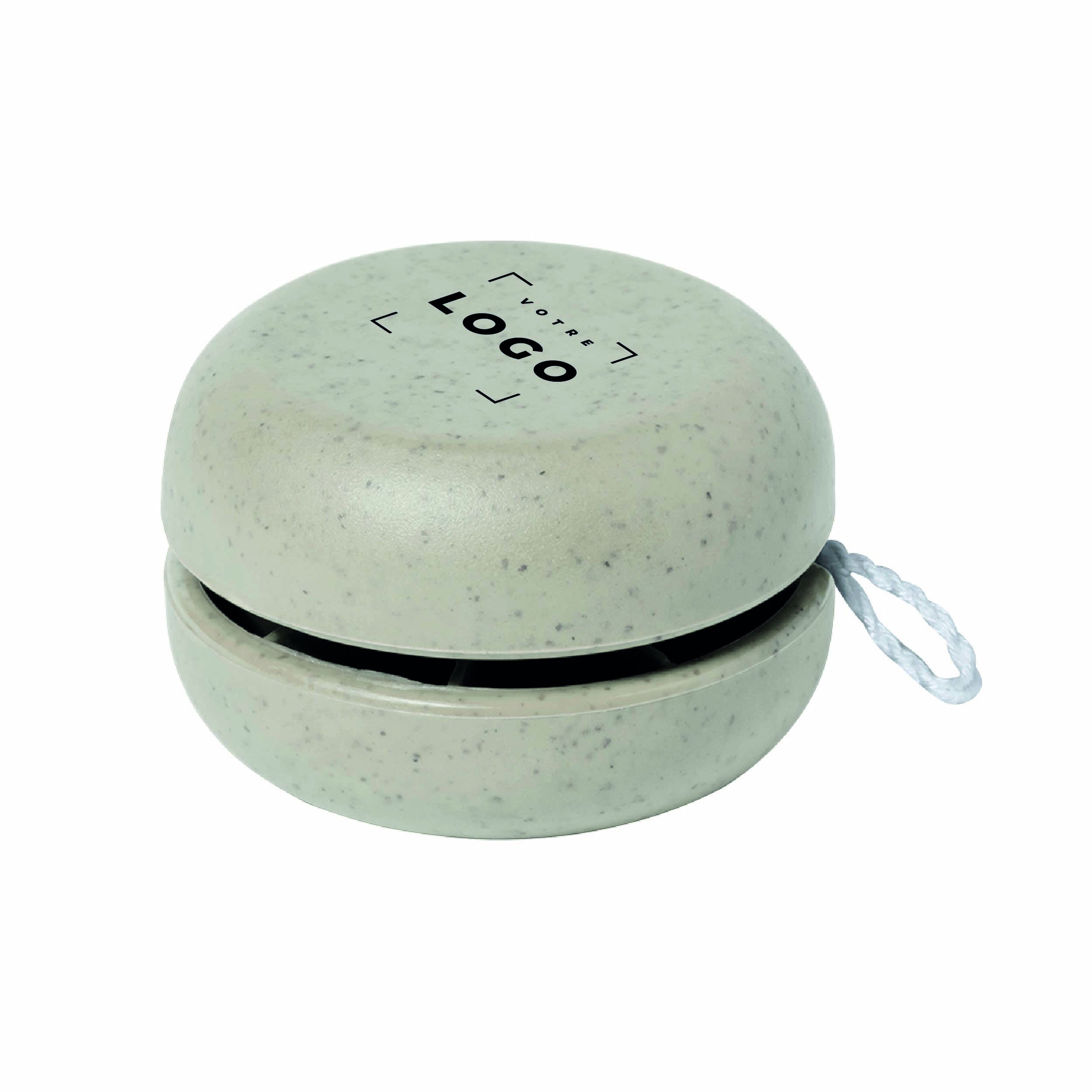 Yoyo en canne à blé personnalisable, robuste et écologique, disponible en couleurs vives avec un fil de coton tressé de 100 cm. Un cadeau ludique et interactif, idéal pour vos clients, prospects et collaborateurs, qui combine divertissement, valeurs durables et image responsable de votre entreprise.