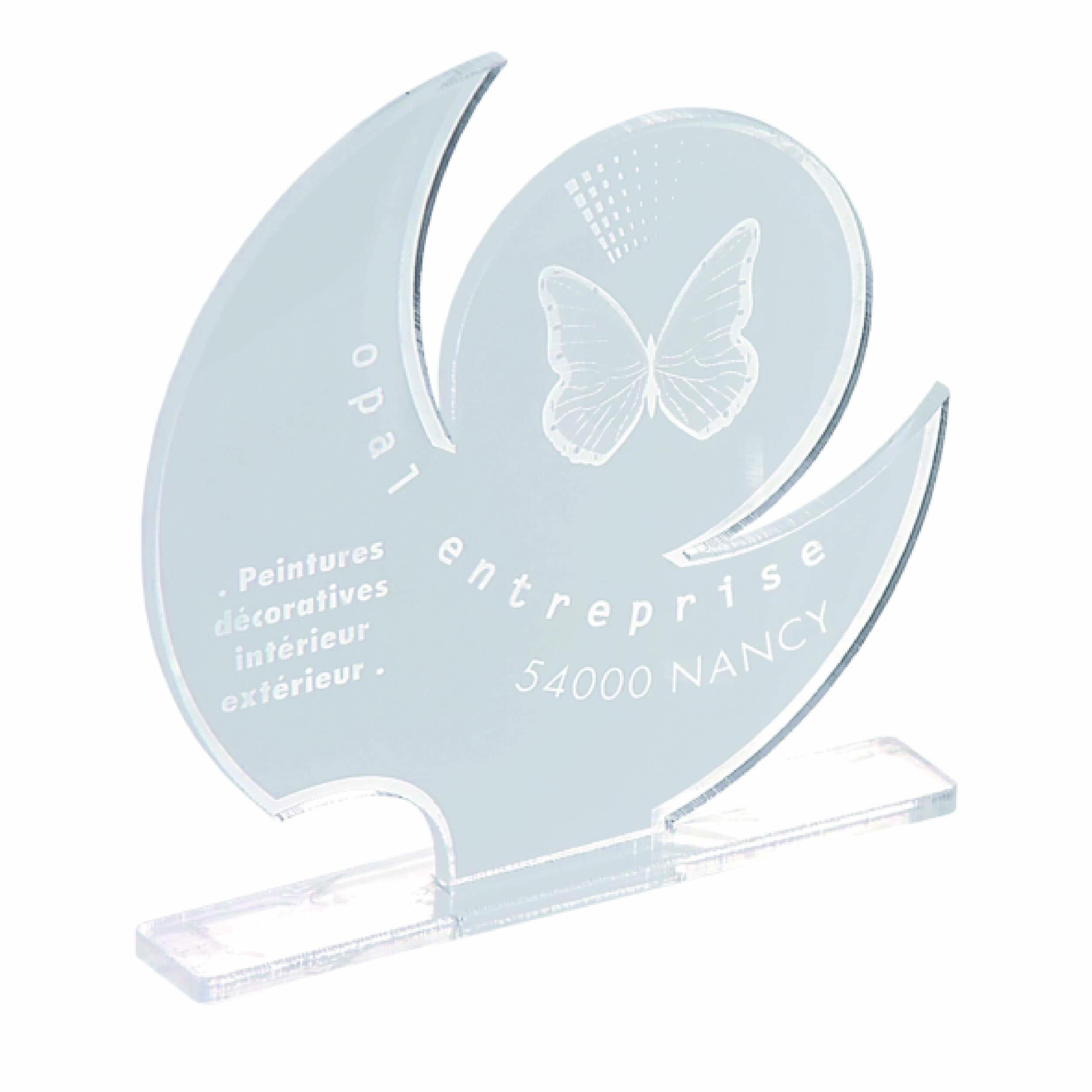 Fabriqué en PMMA transparent de haute qualité, ce trophée sur-mesure est un véritable symbole d’excellence et de distinction. Grâce à son design épuré et moderne, il met en valeur les réussites de vos clients, prospects ou collaborateurs. Ce produit Made in France témoigne de l’expertise et du savoir-faire d’une entreprise locale, garantissant ainsi un objet haut de gamme et durable. Offrir un trophée fabriqué en France, c’est soutenir l’artisanat tout en présentant un produit de qualité supérieure.