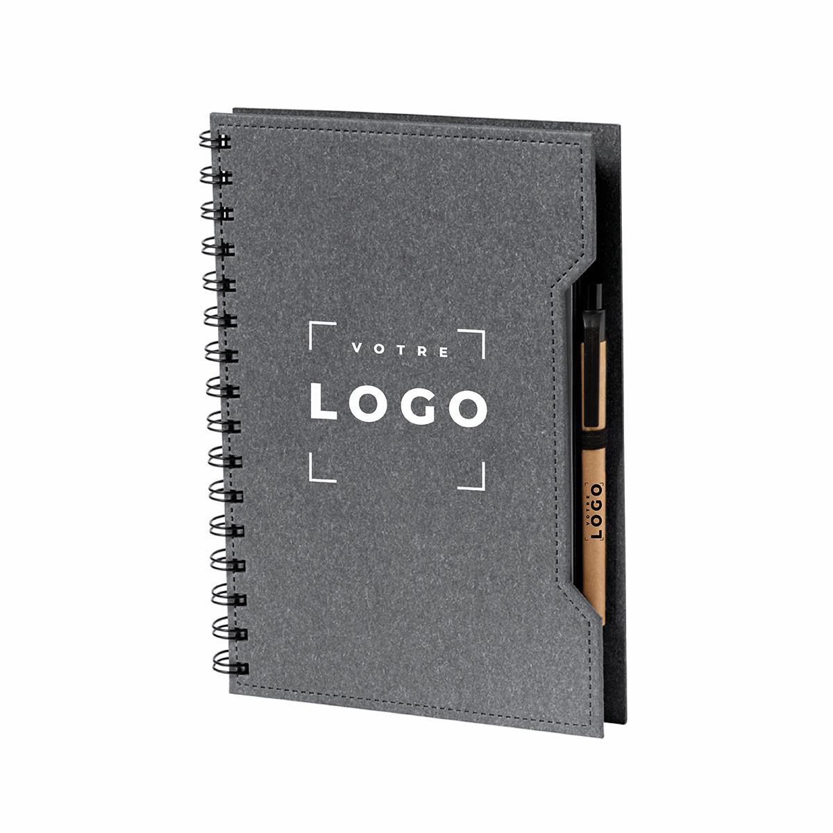 Offrez à vos clients, prospects ou collaborateurs un produit à la fois utile et respectueux de l’environnement : notre bloc-notes à spirales en carton recyclé. Conçu à partir de matériaux durables, il allie praticité et engagement écologique, parfait pour renforcer l’image responsable de votre entreprise.
