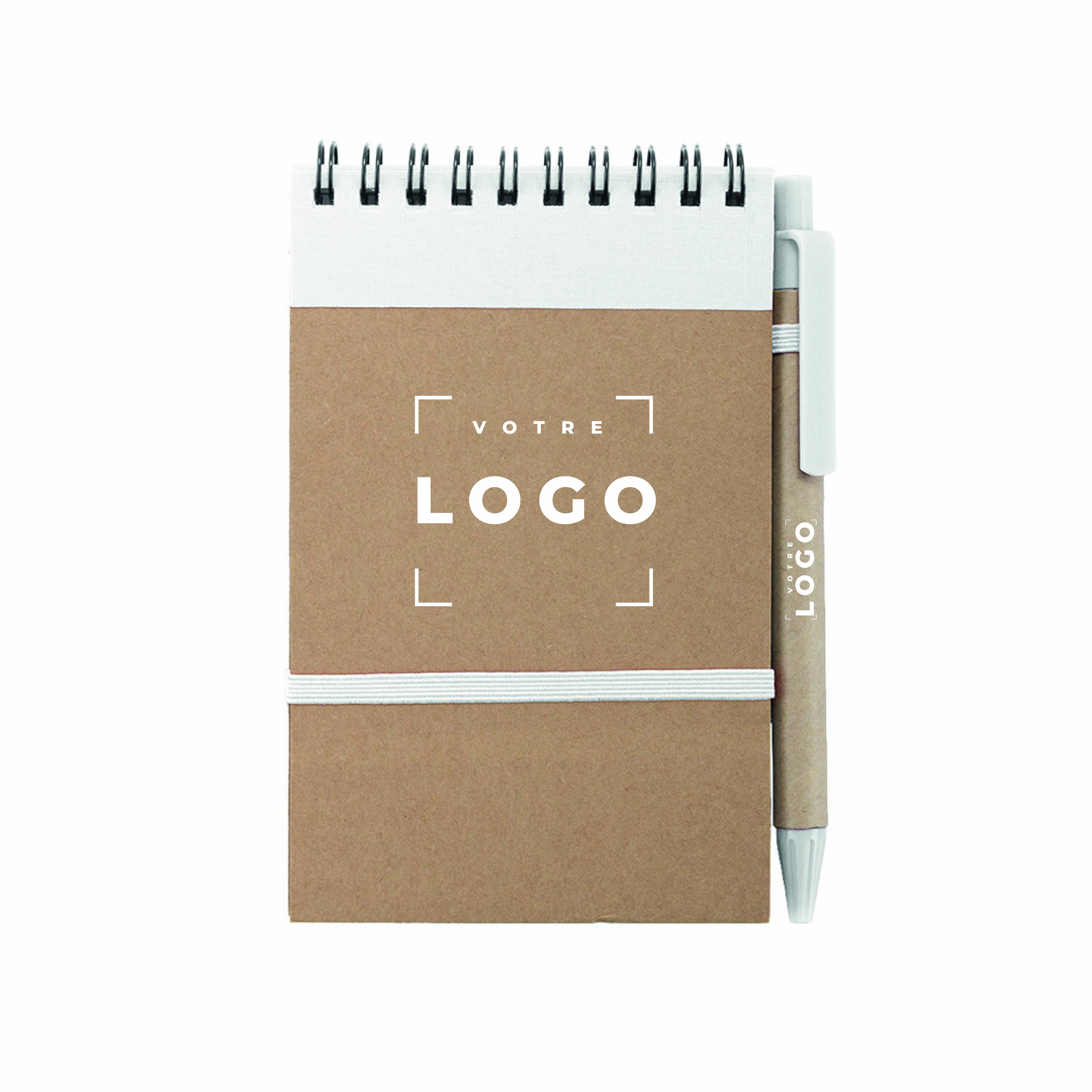 Son design moderne et sa couverture souple en font un accessoire élégant et compact, facile à emporter partout. Le stylo en carton recyclé inclus complète ce produit durable, parfait pour les entreprises souhaitant offrir à leurs clients, prospects ou collaborateurs un cadeau à la fois utile, personnalisable et respectueux de l'environnement.