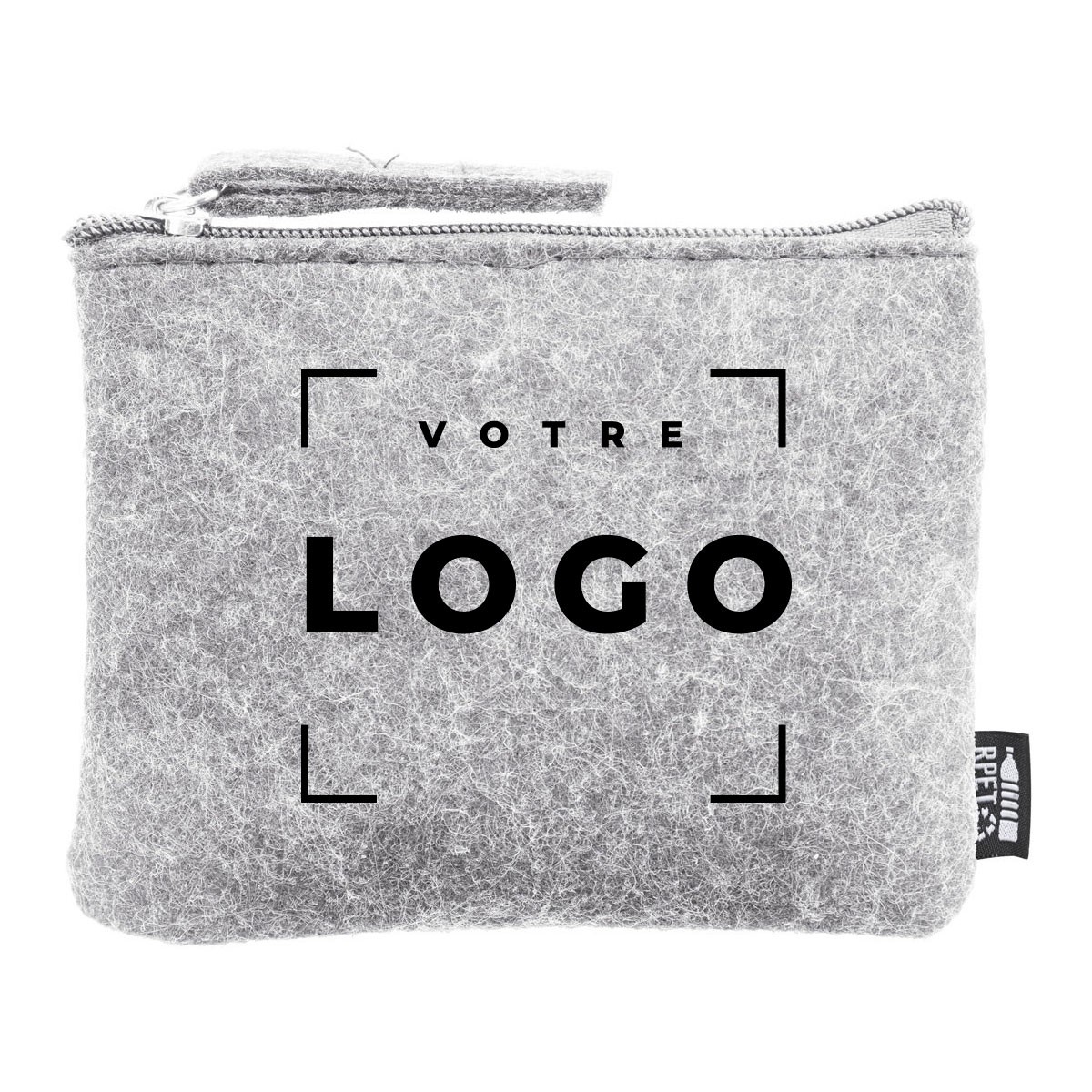 Porte-monnaie zippé en feutre RPET recyclé, avec étiquette RPET distinctive, disponible en gris foncé et gris clair. Personnalisable pour afficher votre logo ou message, il combine design élégant, robustesse et durabilité. Conçu pour les clients, prospects et collaborateurs, il devient un support de communication pratique et responsable. Léger, tendance et écologique, il reflète l’engagement et le professionnalisme de votre entreprise.