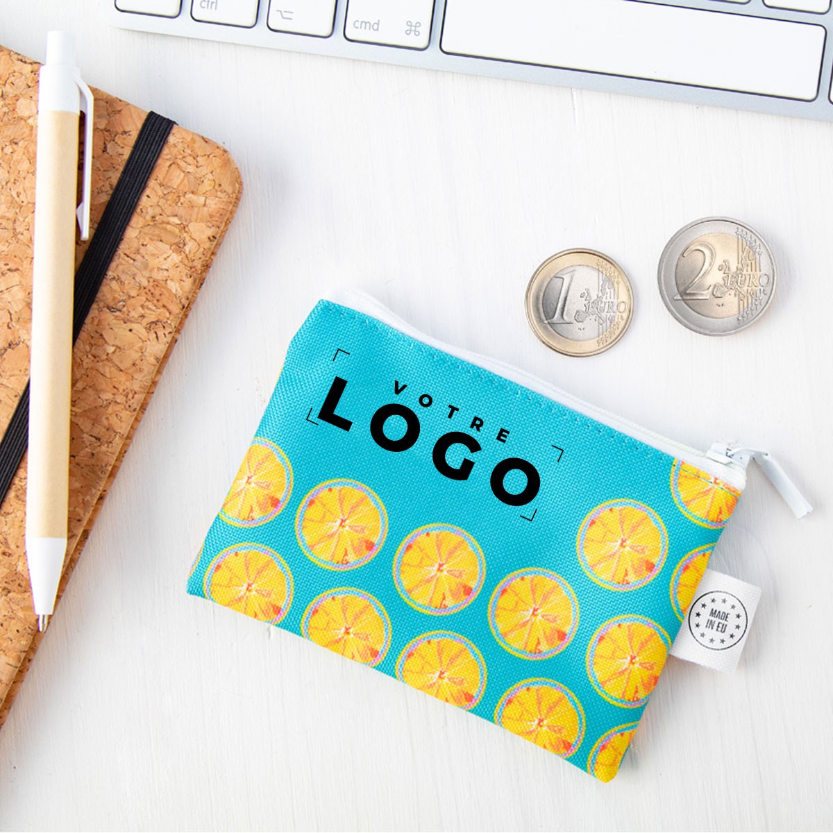 Conçu pour clients, prospects et collaborateurs, ce porte-monnaie zippé se distingue par sa praticité et son style moderne. Sa personnalisation complète et ses matériaux durables en font un support de communication apprécié et utilisé au quotidien, reflétant l’engagement et le professionnalisme de votre entreprise.