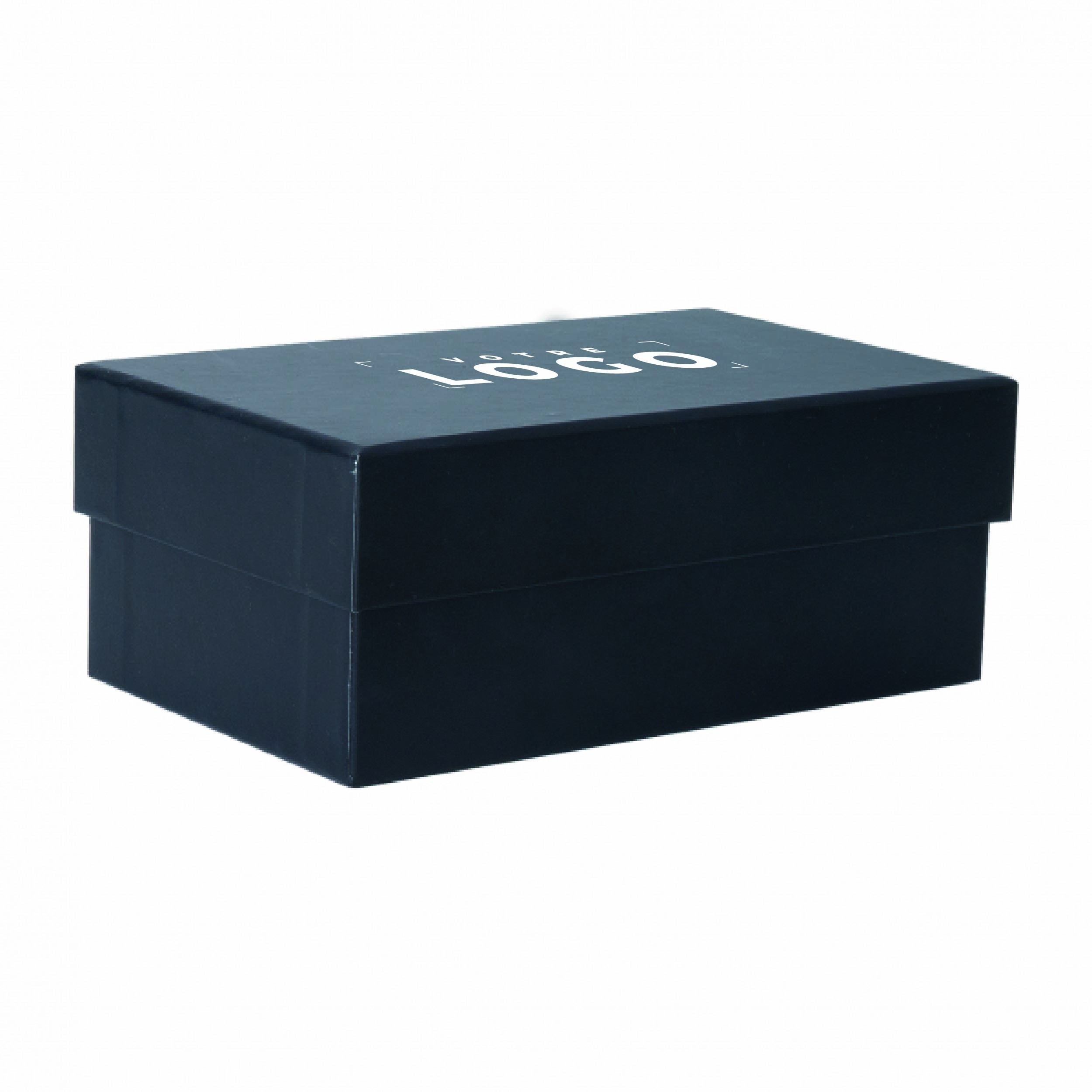 Coffret de 2 bougies en verre Made in France, présenté dans un coffret en carton robuste 800 gr/m². Dimensions du coffret : 17,2 x 10,6 x 7 cm. Chaque bougie mesure ø 4,9 x 5,2 cm. Personnalisable avec le parfum de votre choix parmi Santal, Citron, Myrtille et Héliotrope. Produit vendu uniquement avec marquage, licence exclusive. Idéal pour cadeaux d’entreprise, clients et collaborateurs, alliant raffinement et élégance.