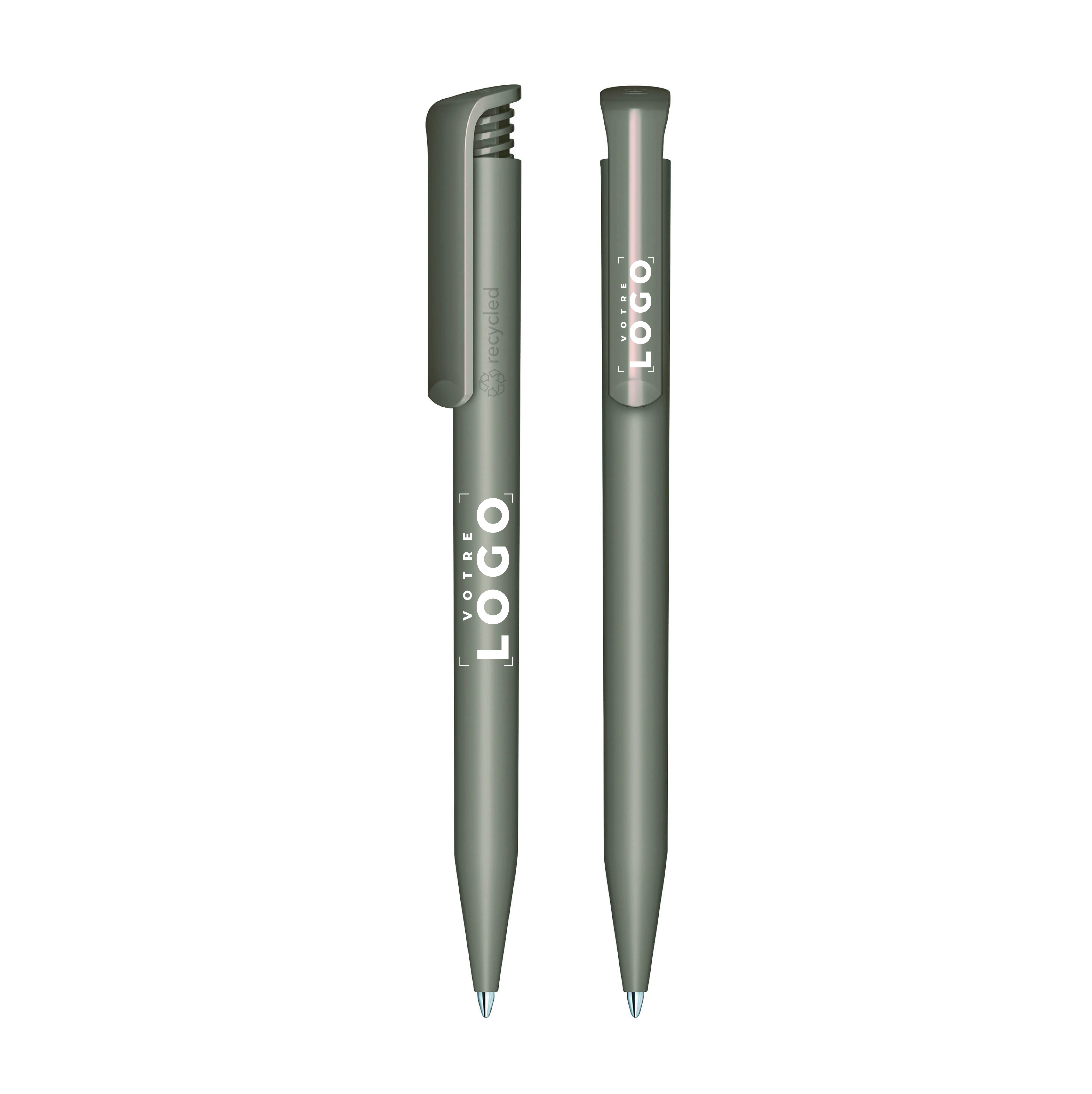 Le stylo à bille rétractable en plastique recyclé allie design moderne et éco-responsabilité. Sa surface opaque et finition mate offre une prise en main agréable, tandis que sa recharge Magic Flow permet jusqu'à 2000 mètres d'écriture fluide. Ce produit, fabriqué en Allemagne, garantit une qualité exceptionnelle et repose sur de l'électricité verte neutre en émissions de CO2, respectant ainsi les principes du développement durable. Disponible en encre bleue ou noire, il peut être personnalisé pour mettre en valeur votre image de marque. Un choix parfait pour marquer l'esprit de vos clients et collaborateurs, tout en affichant votre engagement écologique.