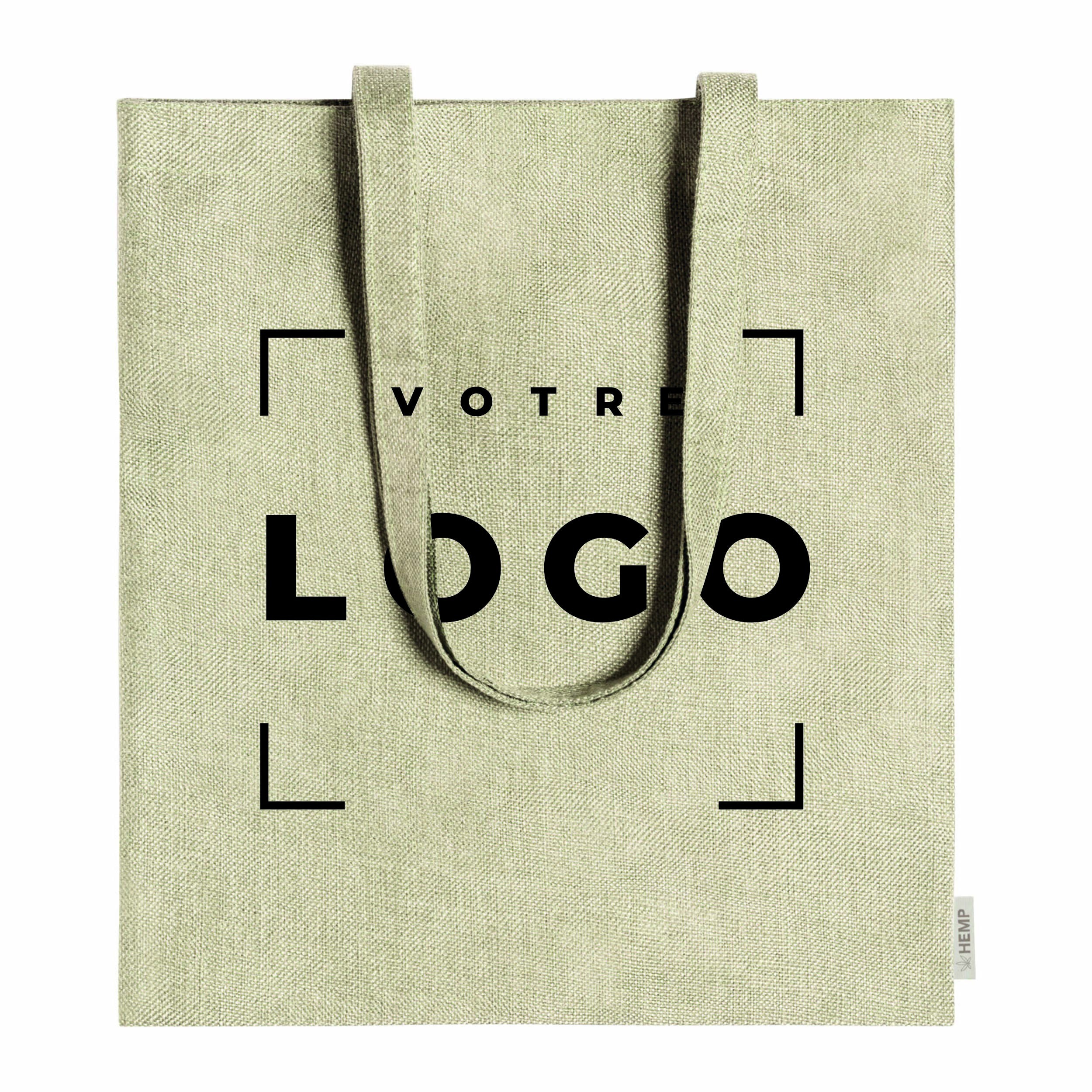 Disponible en couleur naturelle ou vert, ce tote bag en chanvre affiche un style authentique et élégant. Sa surface permet une personnalisation efficace avec votre logo ou message, transformant le sac en outil de communication durable et visible.